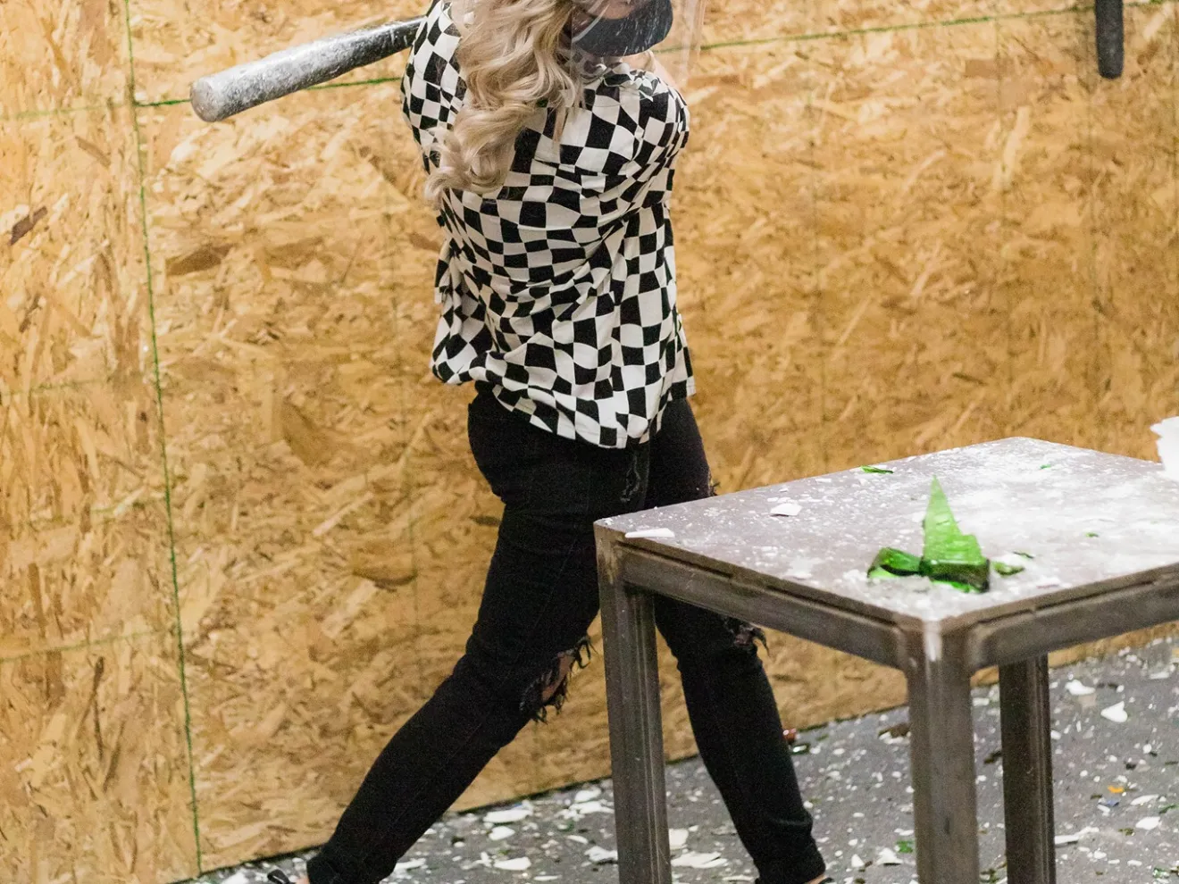 While you are more than welcome to bring items from home, please note that not everything is safe/allowed. We do not allow liquids, explosives, tube TVs or items filled with ink/paint to name a few. All items you bring must be reviewed by our staff before being allowed in the rage room for smashing. Please give us a call to discuss any items you may be considering.